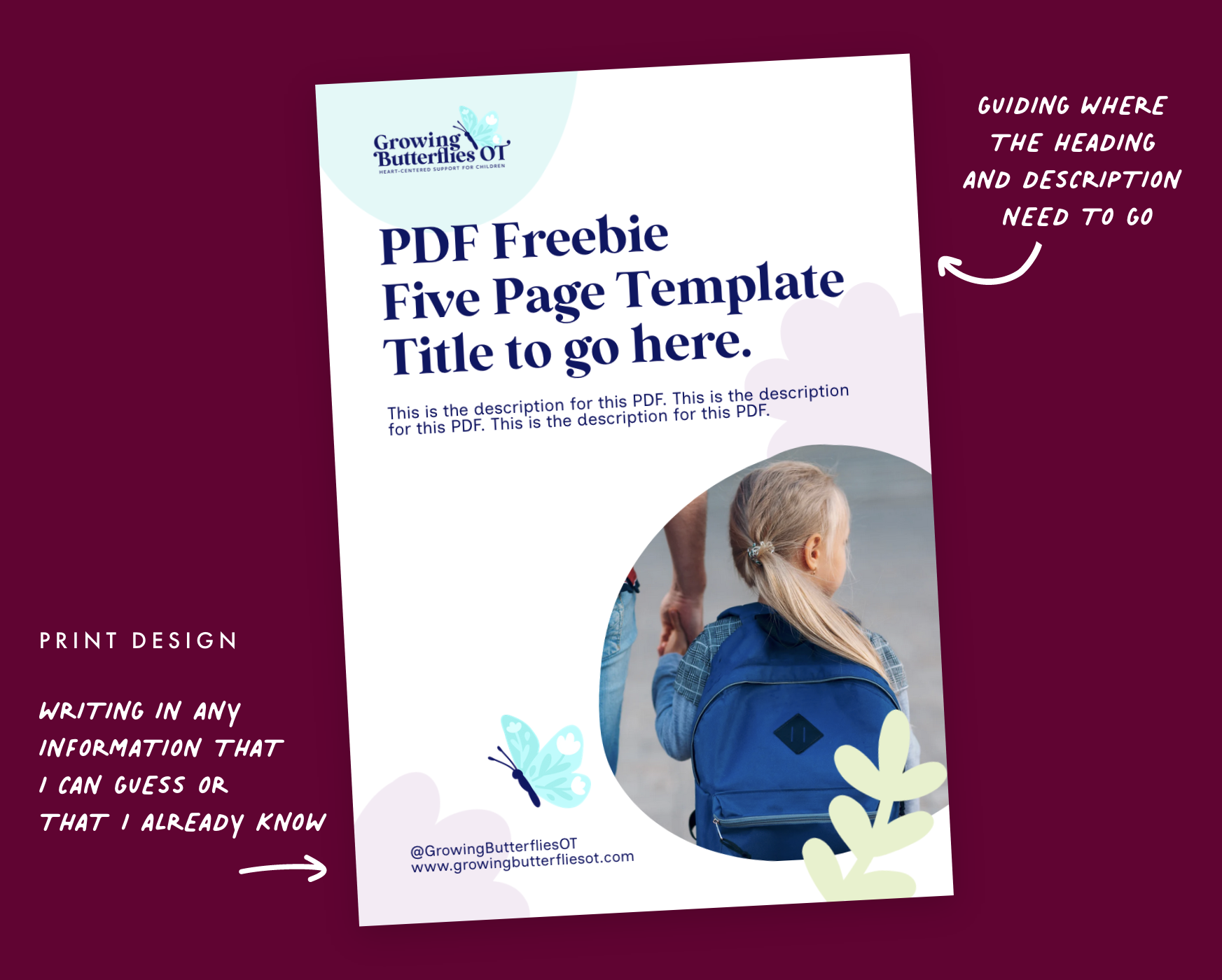 Write content that guides your clients in what needs to be provided or written. When you are designing for print, social media or websites, you are in a unique position to see the design of the piece and what the design needs to allow it to go the extra mile. You can write notes to your clients instead of Lorem Ipsum, lay out what information is needed and write the motivations behind the text, so your client gets a sense of what their words need to do here to be impactful. For example, instead of saying “Title to go here. Title to go here.”, you can instead write “Engaging title to go here, keep it 4-8 words!”. Or instead of “Description here”, you can write “Description of your services to go here, keep these snappy but write out your three core services to clearly communicate to viewers what you offer and where you are based.”